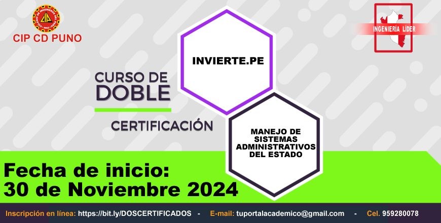 CURSO CON DOBLE CERTIFICACIÓN: INVIERTE.PE 2024 y MANEJO DE SISTEMAS ADMINISTRATIVOS DEL ESTADO